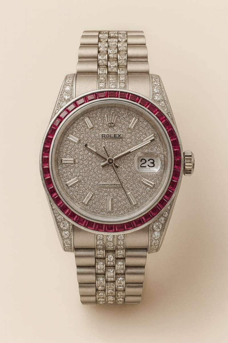 • سبک: لاکچری و کاستومایز (توسط جواهرساز یا شرکت کاستومایزر، نه تولید مستقیم رولکس)