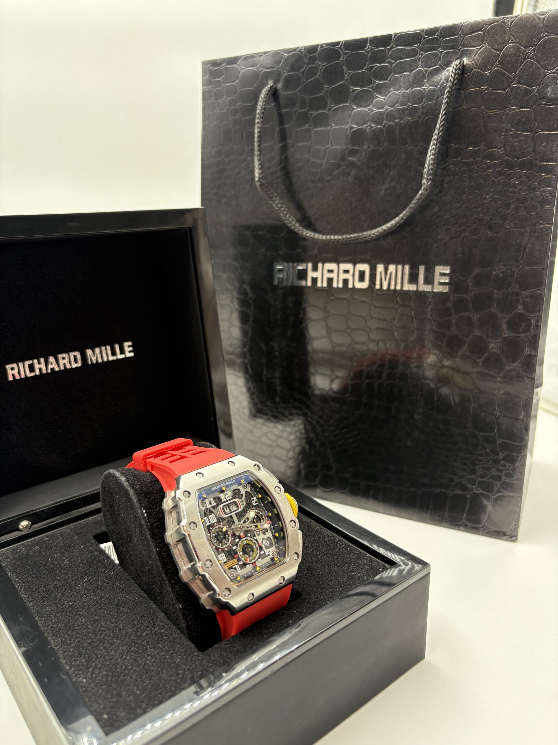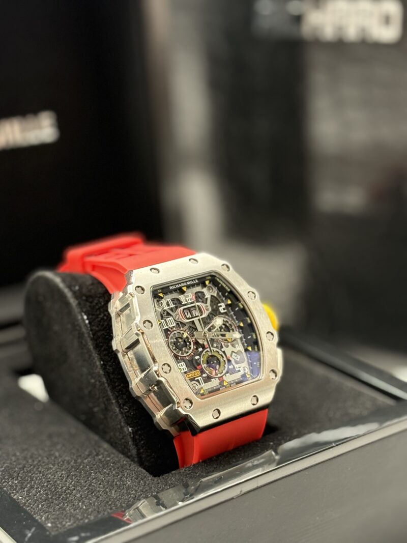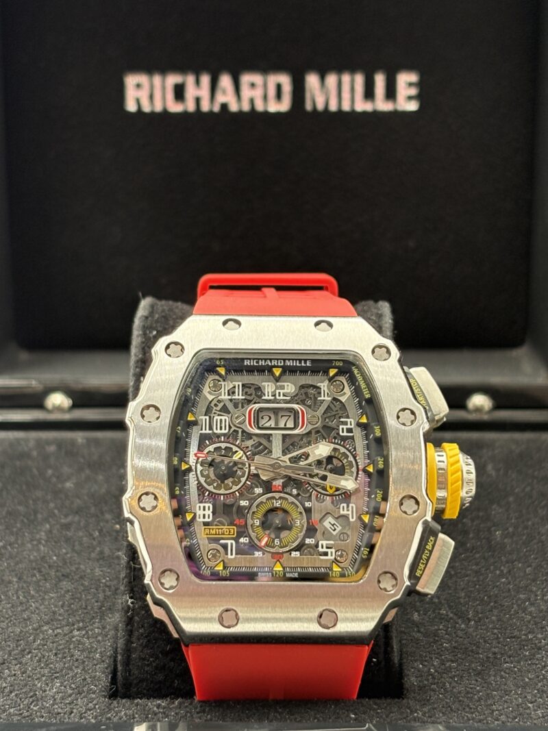 🔹 مشخصات کلی  • برند: Richard Mille  • کالکشن: خانواده RM 11 (احتمالاً RM 11-03 Automatic Flyback Chronograph)  • قاب